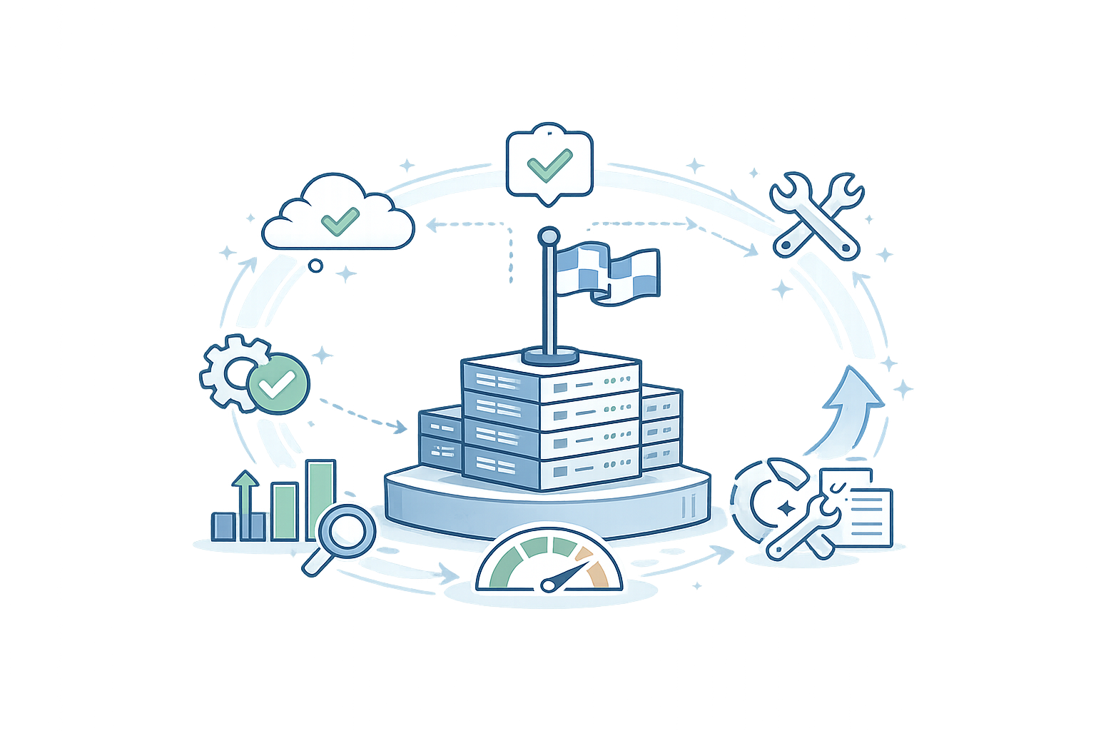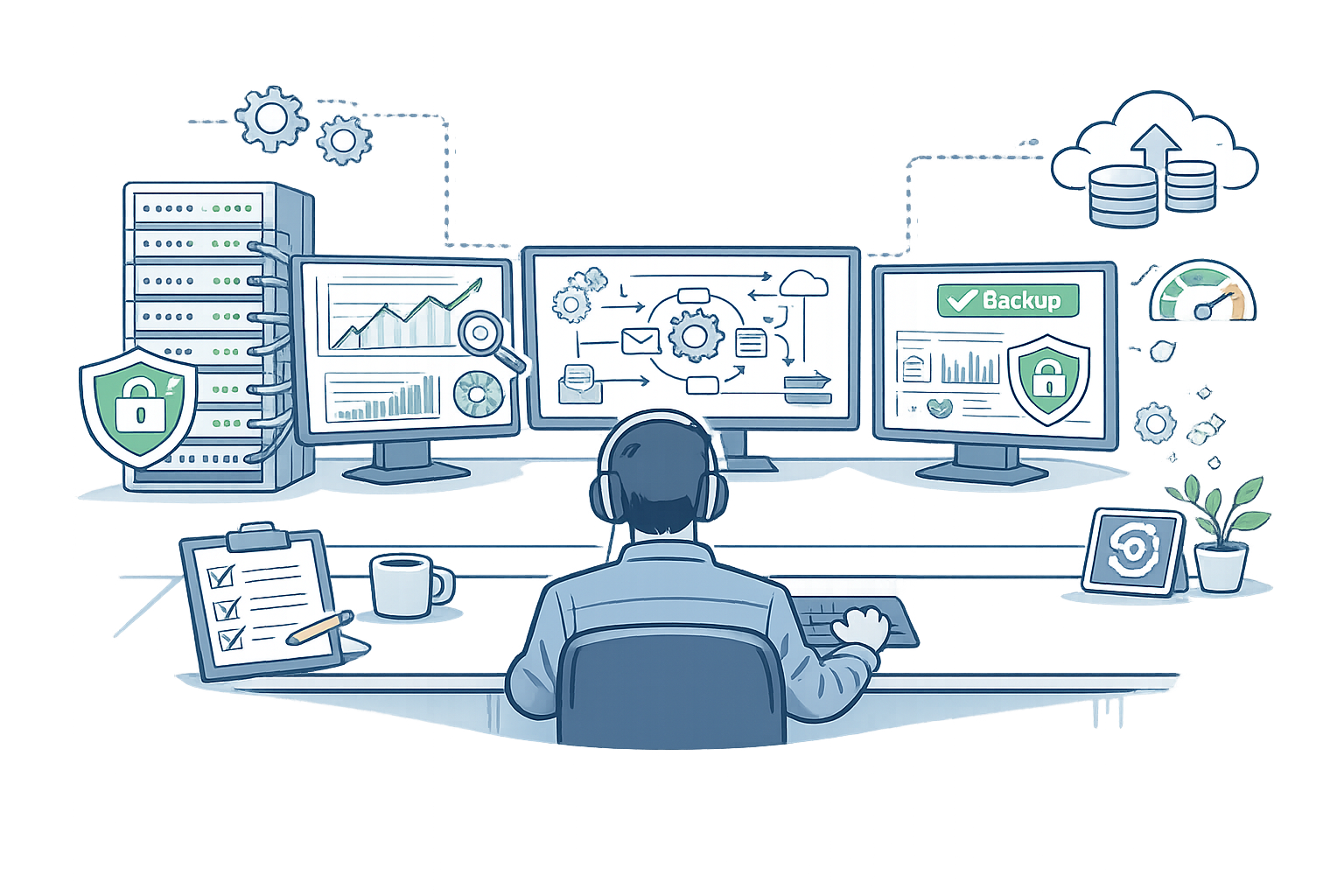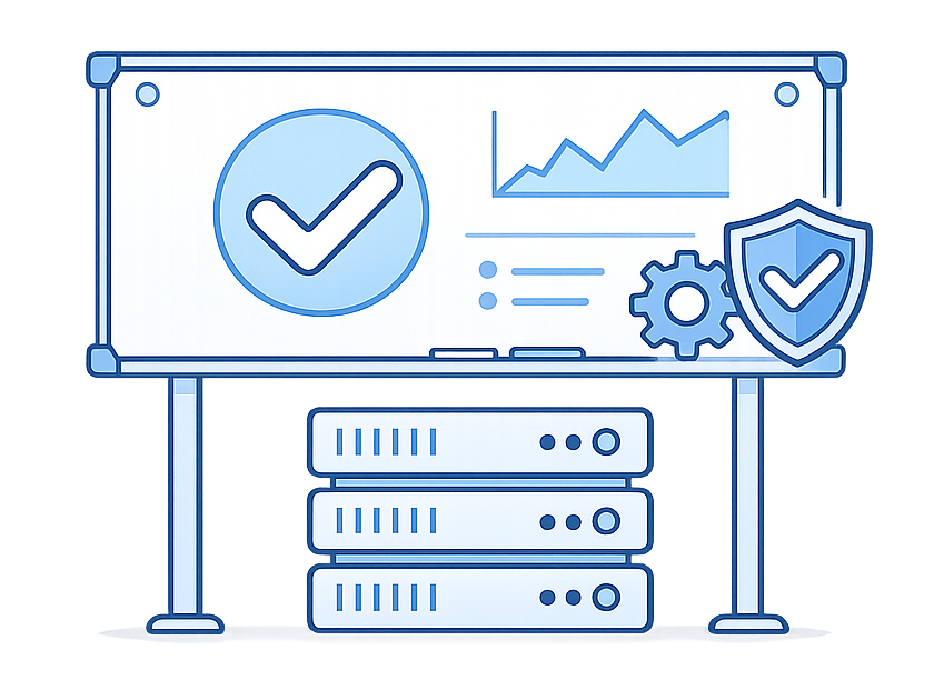 Monitoring, backups, performance, and documentation are standardized across your systems.